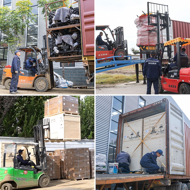 In the shipping area, workers meticulously conduct final inspections and secure the equipment for export. Among this shipment: