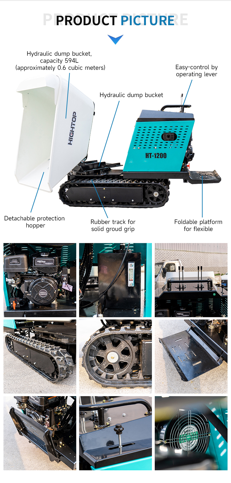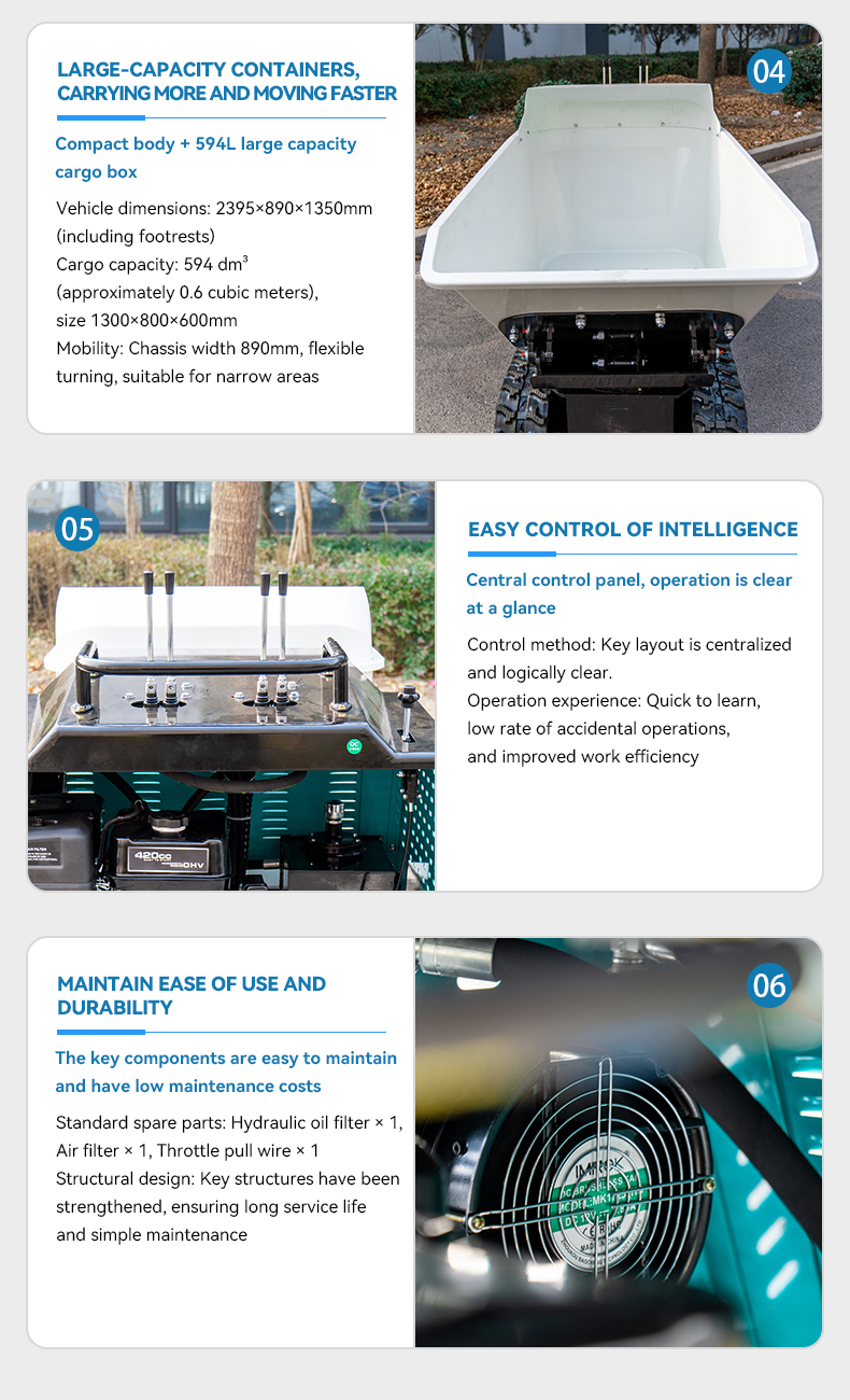 Equipped with a powerful 420CC Da Jiang engine rated at 13.5HP, specifically engineered for heavy-duty material handling. With a maximum load capacity of 1200KG and robust power, it eliminates the inefficiency and fatigue of manual labor.