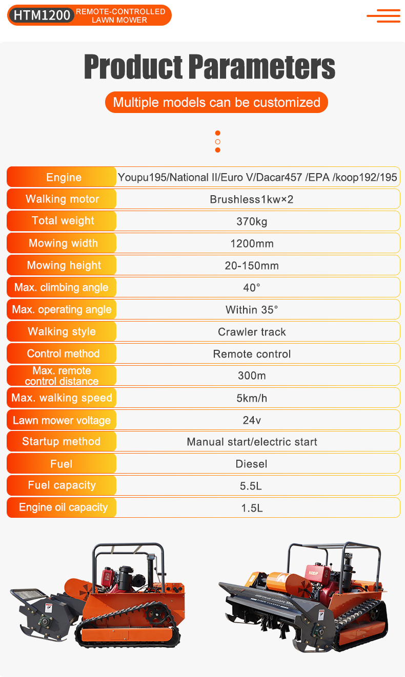 A 300-meter remote control range keeps operators away from hazardous areas, making it ideal for steep slopes and complex terrain while substantially improving operational safety.