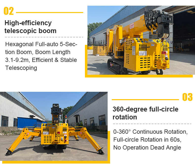 High-efficiencytelescopic boomHexagonal Full-auto 5-Sec-tion Boom, Boom Length3.1-9.2m, Efficient & StableTelescoping