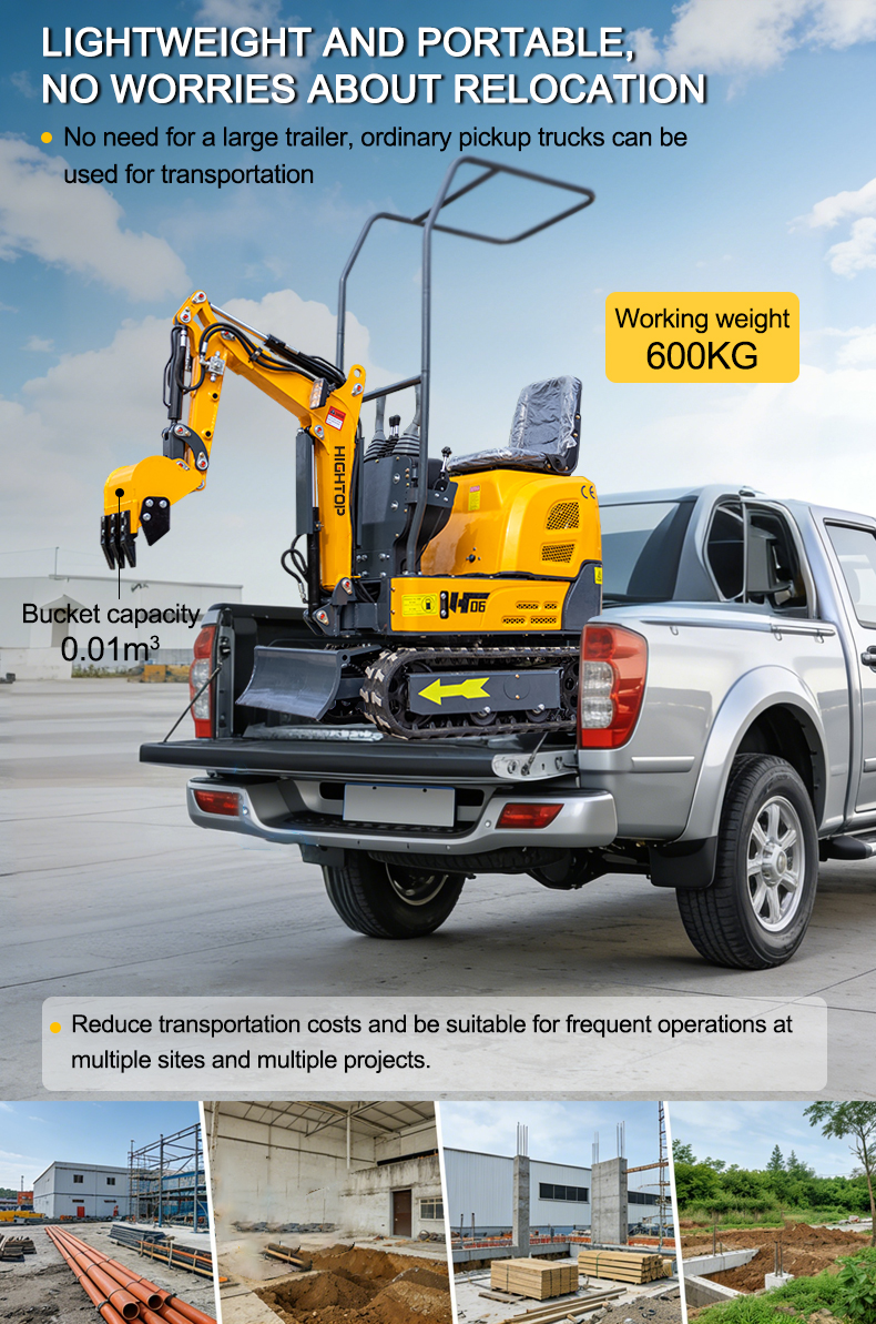 • Total operating weight of just 600 kg; no need for a large trailer—can be transported by a standard pickup truck