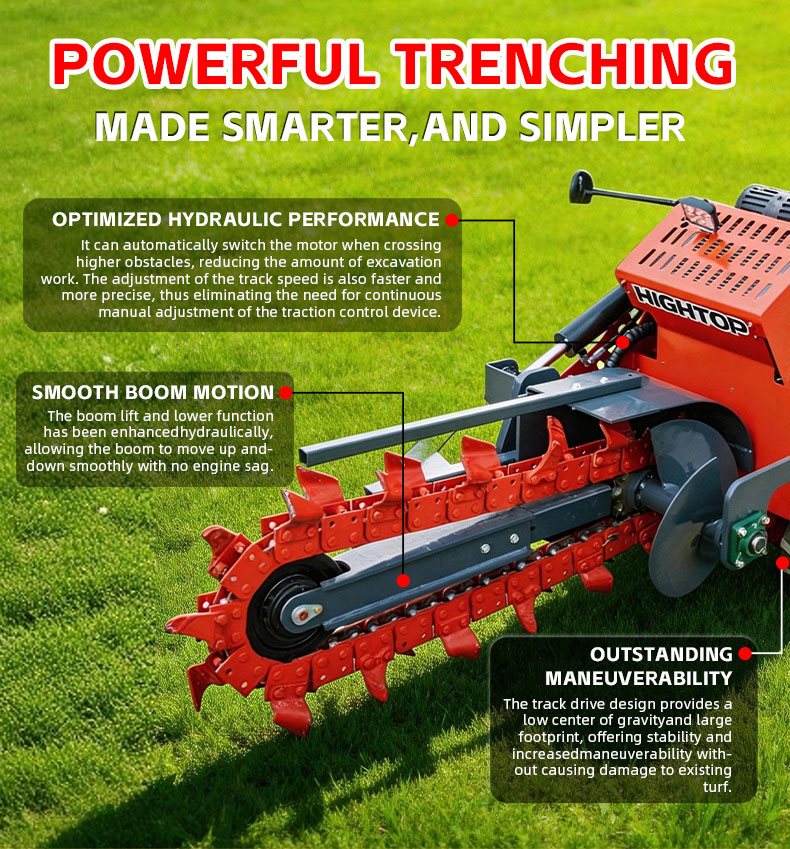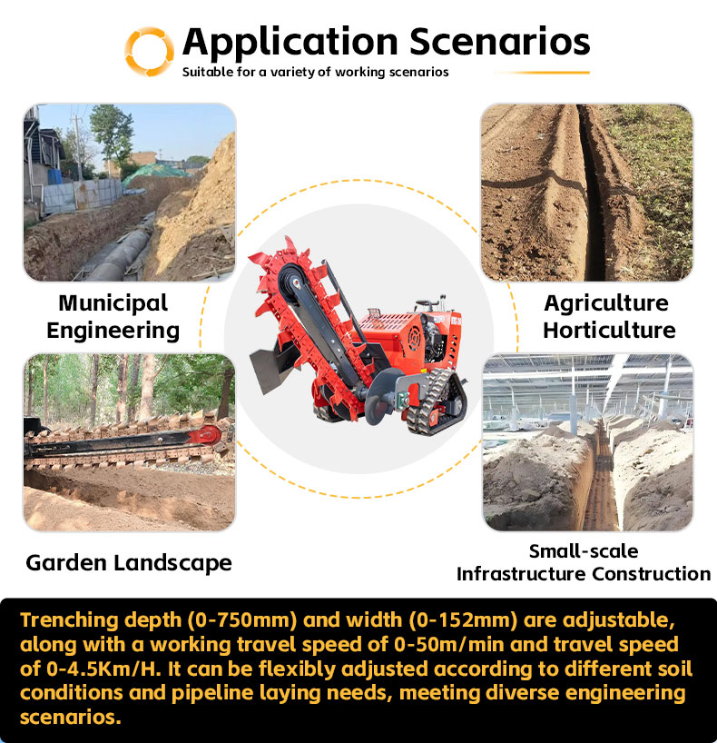 Precise control: Continuously variable transmission (CVT) + precise side-to-side spacing control, with freely adjustable trenching depth and width to suit a variety of applications