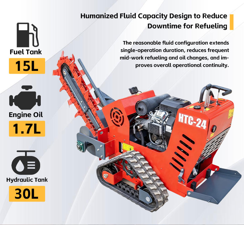 With a 15-liter fuel tank, 1.7-liter engine oil capacity, and a 30-liter hydraulic oil tank, the optimized fluid capacity configuration extends the operating range per session, reduces the frequency of mid-operation stops for refueling or oil changes, and enhances overall operational continuity.