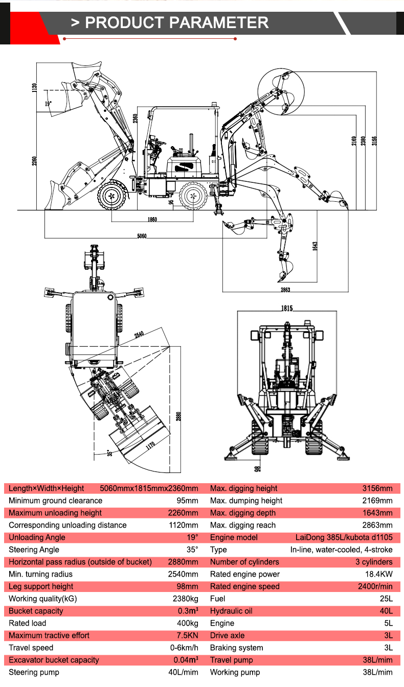 Powerful Performance: 18.4 kW LaiDong engine and 7.5 kN maximum traction, effortlessly handling heavy loads and complex terrain