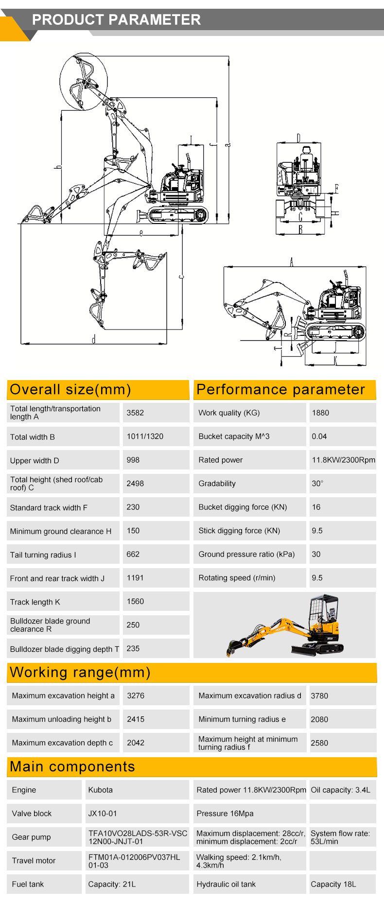 Lightweight body: 2000kg working mass, exerting only 30kPa ground pressure, preventing damage.